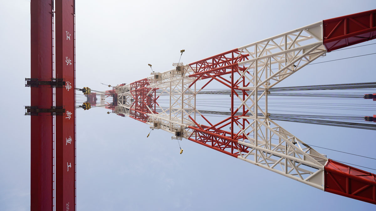 海新重工200T龍門吊主梁吊裝成功